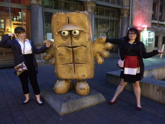 A friend and I pose in confusion with “Burnt das Brot”, a German cartoon character. This was on my study abroad last year, on a tour of Erfurt.